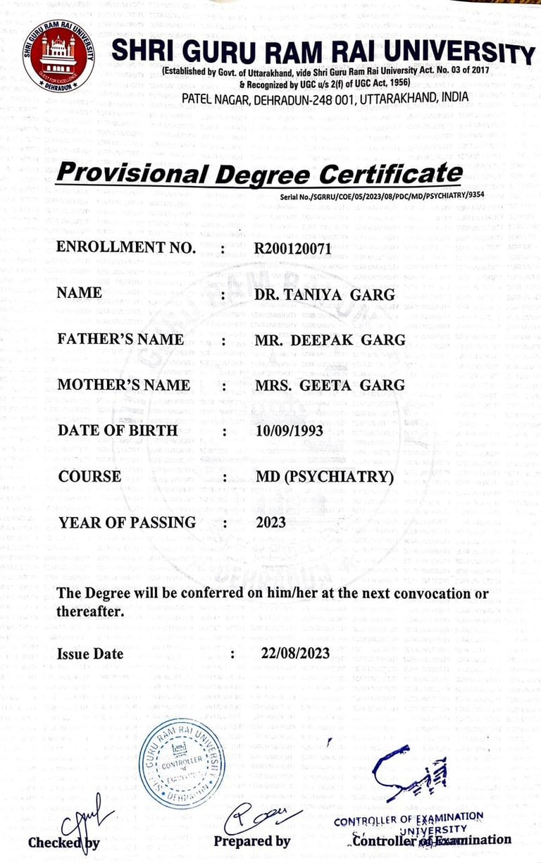 MD (Psychiatry) – Shri Guru Ram Rai University